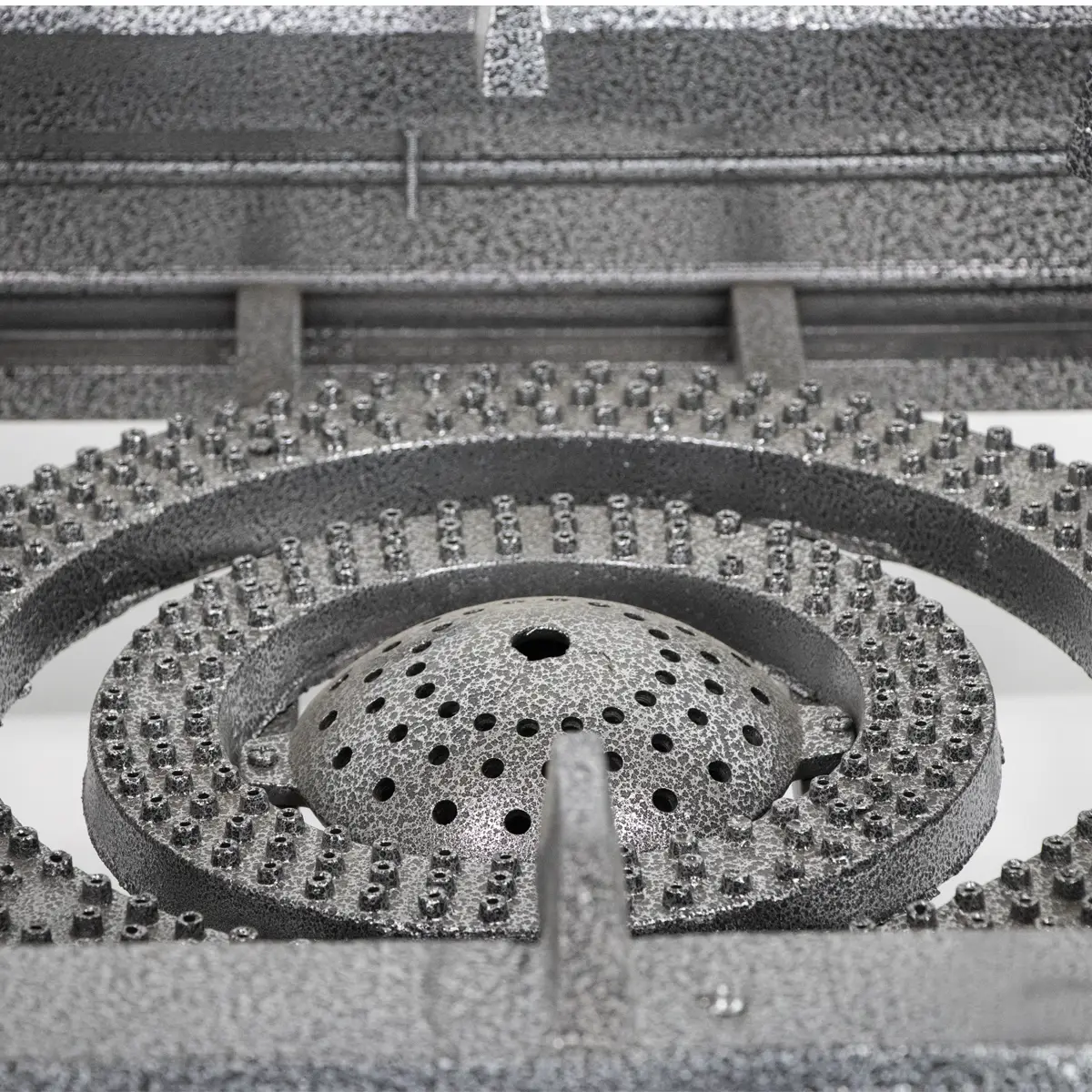 سه شعله چدن: شعله‌های ساخته شده از چدن مقاوم، حرارت بالا و پایداری شعله را تضمین می‌کنند.