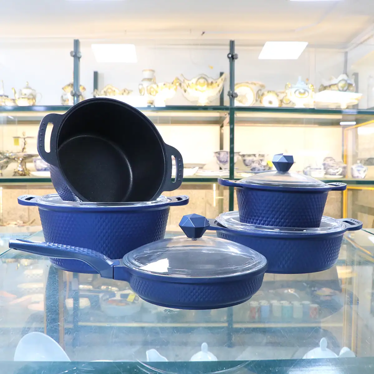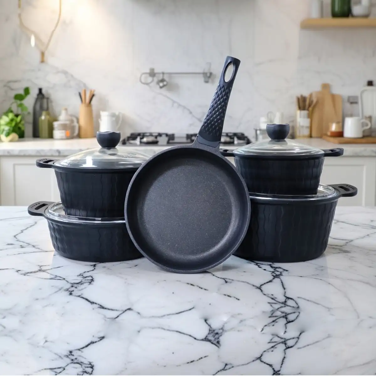 سرویس چدن 9 پارچه گرانیت تیارا الماسی / موجی را برای خانوادههایی طراحی کردند که به دوام ظروف و زیبایی آشپزخانه توجه ویژه دارند.