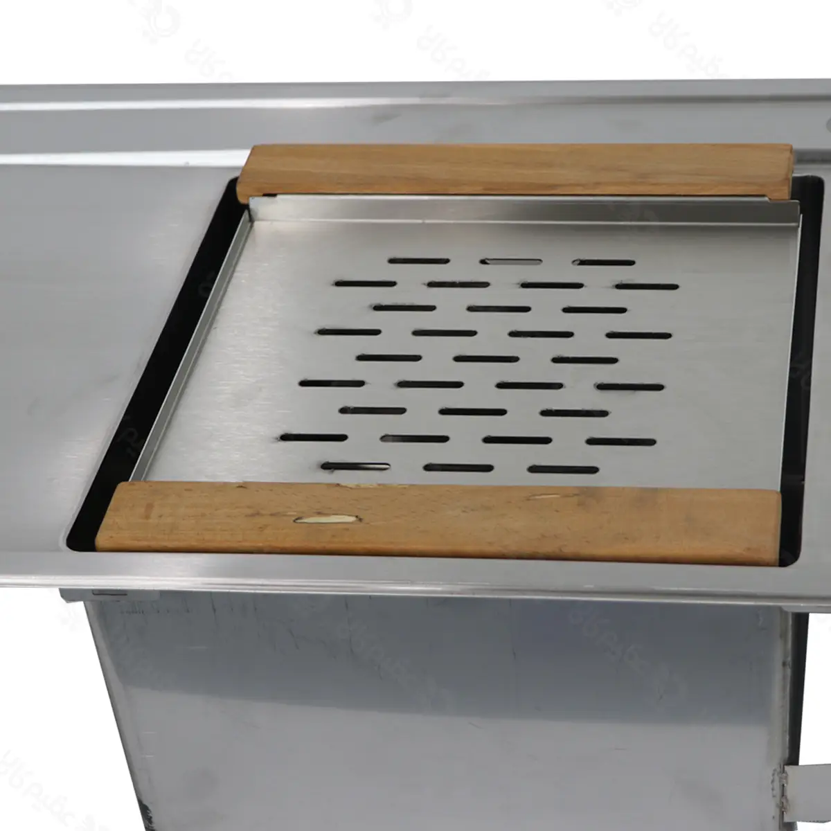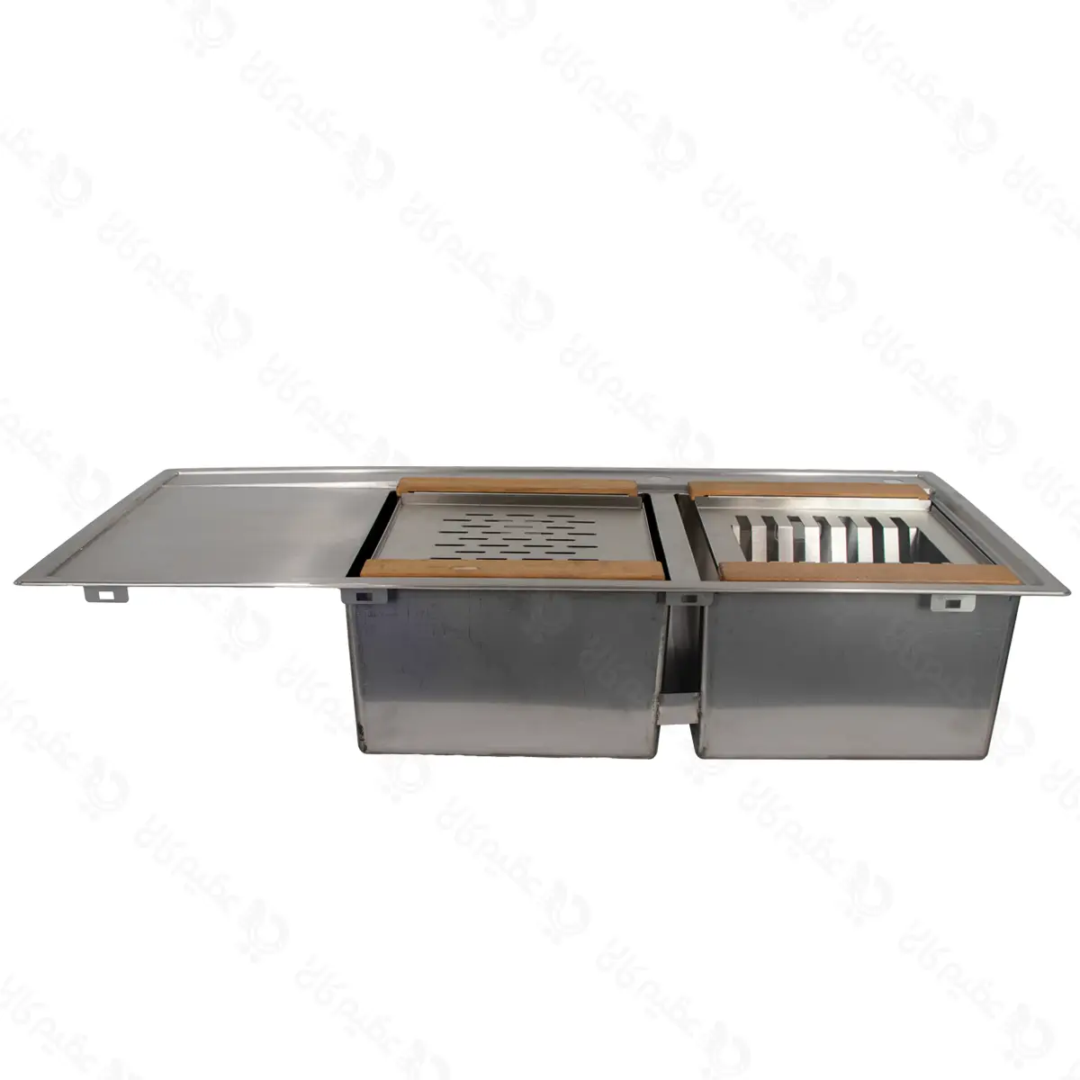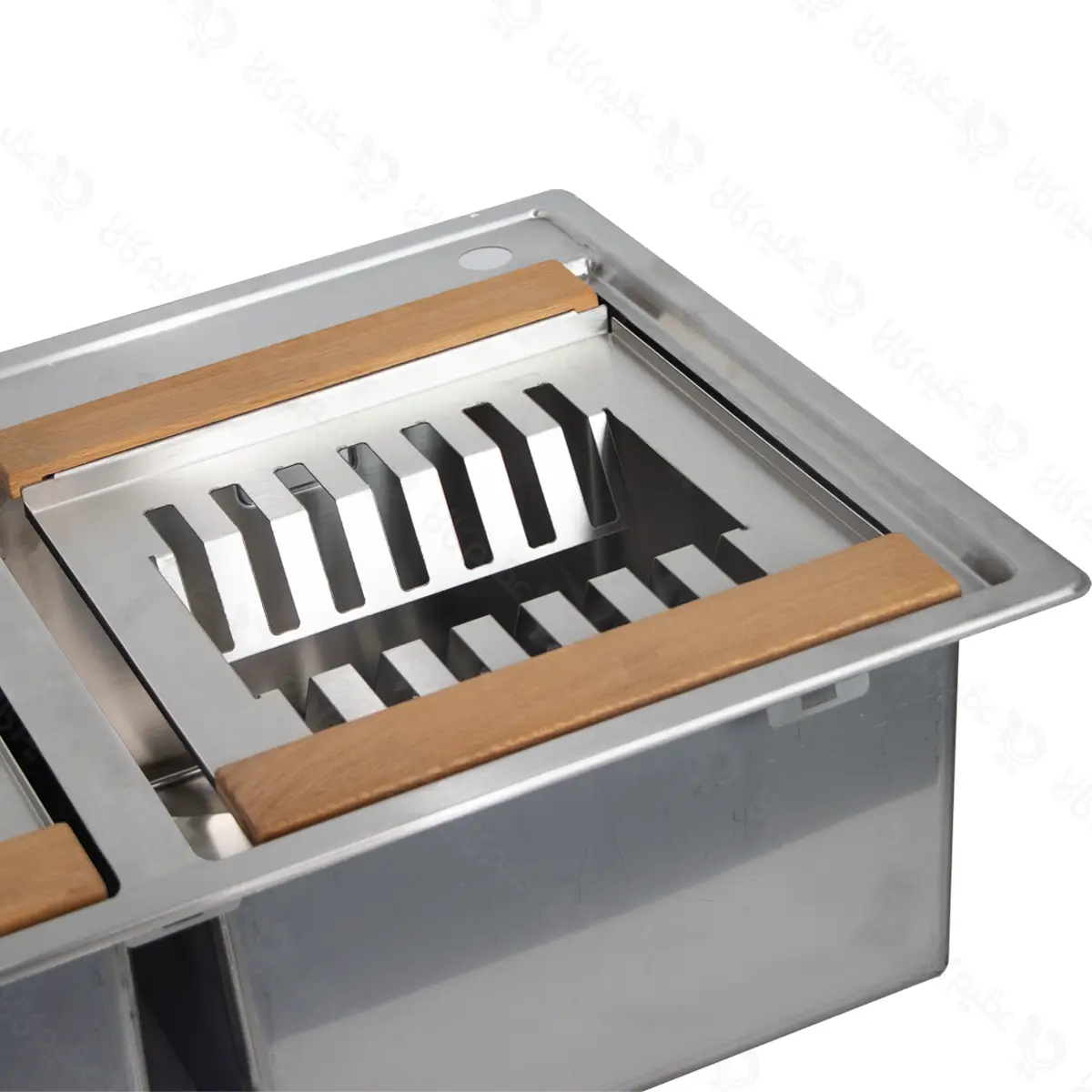 • جزئیات ساخت: در ساخت این سینک ورق با ضخامت 1 میلیمتر و بست سینک از استیل 304 با ضخامت 2 میلیمتر، تضمین‌کننده دوام و استحکام در برابر استفاده مکرر هستند.