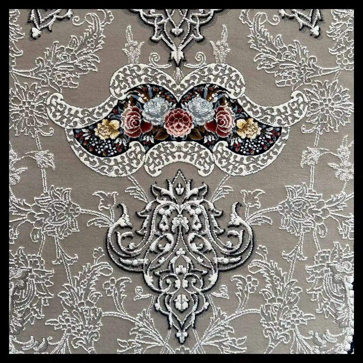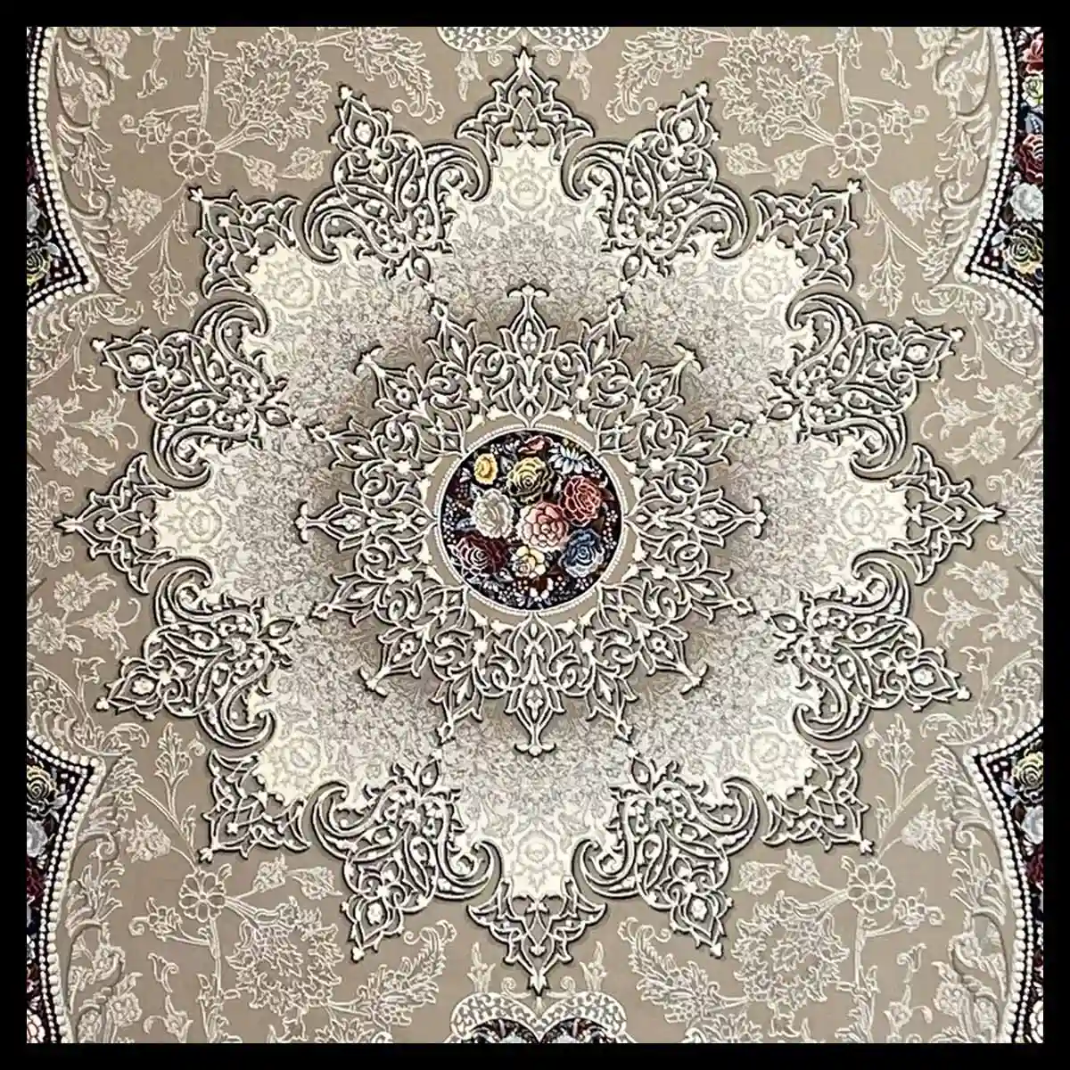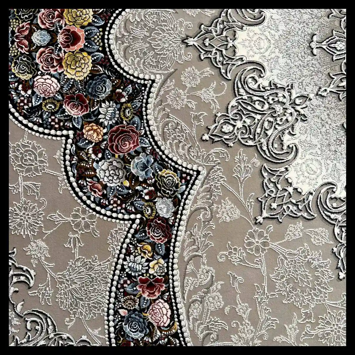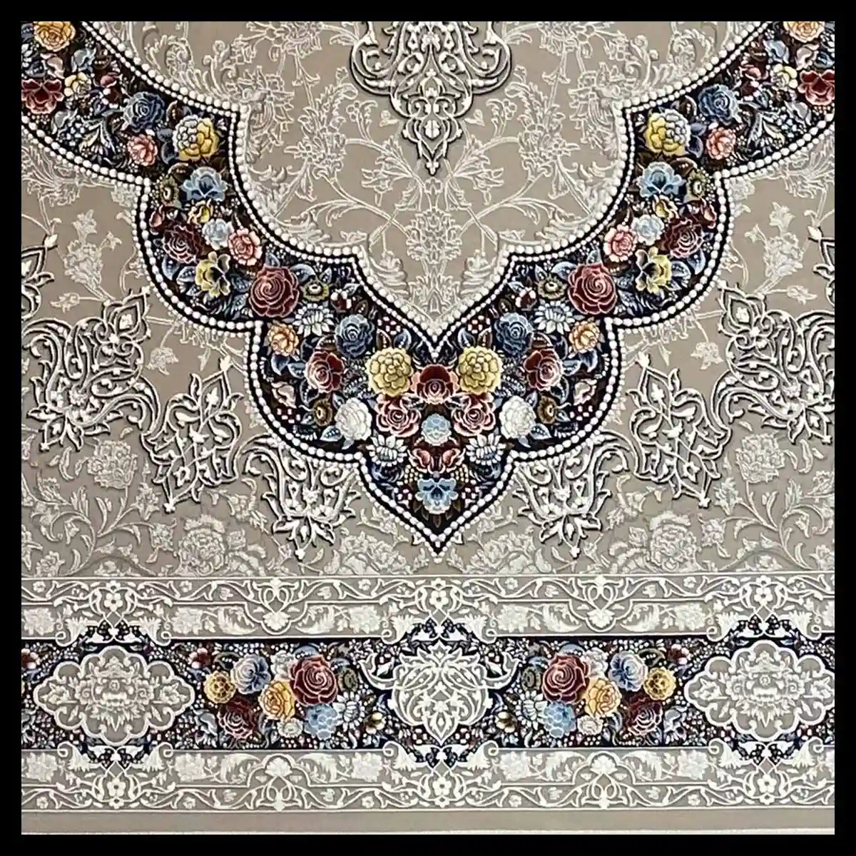 فرش 1200 شانه مدل آروانا نقره ای با بافت دقیق و منظم تولید شده که جزئیات نقوش را با وضوح و ظرافت فوقالعاده نمایش میدهد. تراکم شانه و گره بالا باعث میشود سطح فرش صاف، یکنواخت و مقاوم در برابر فشار پا و استفاده روزمره باقی بماند، حتی در فضاهای پررفتوآمد.