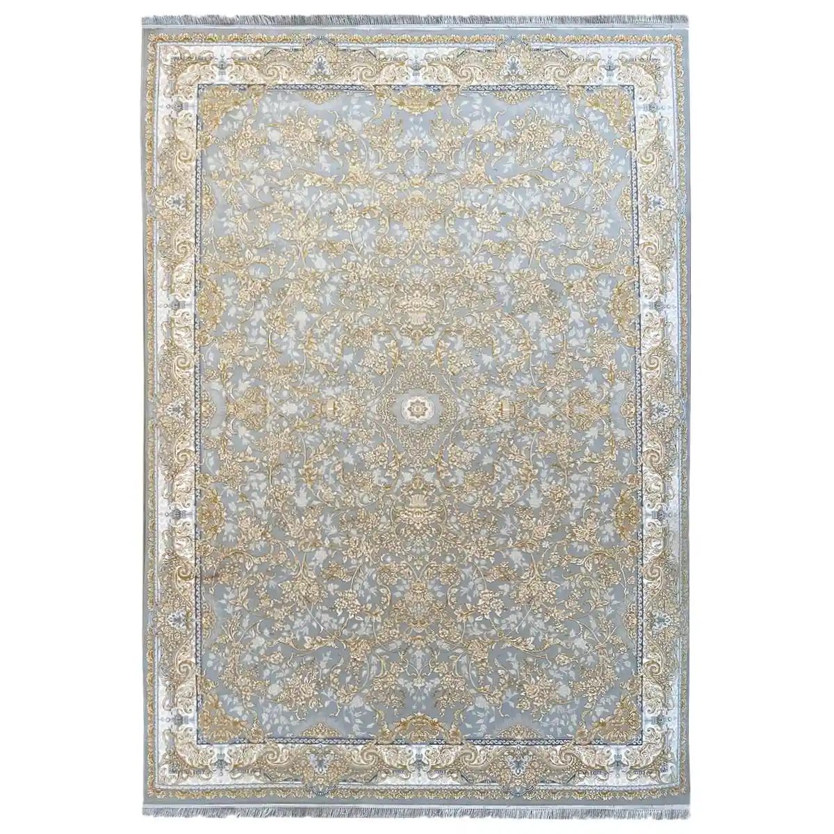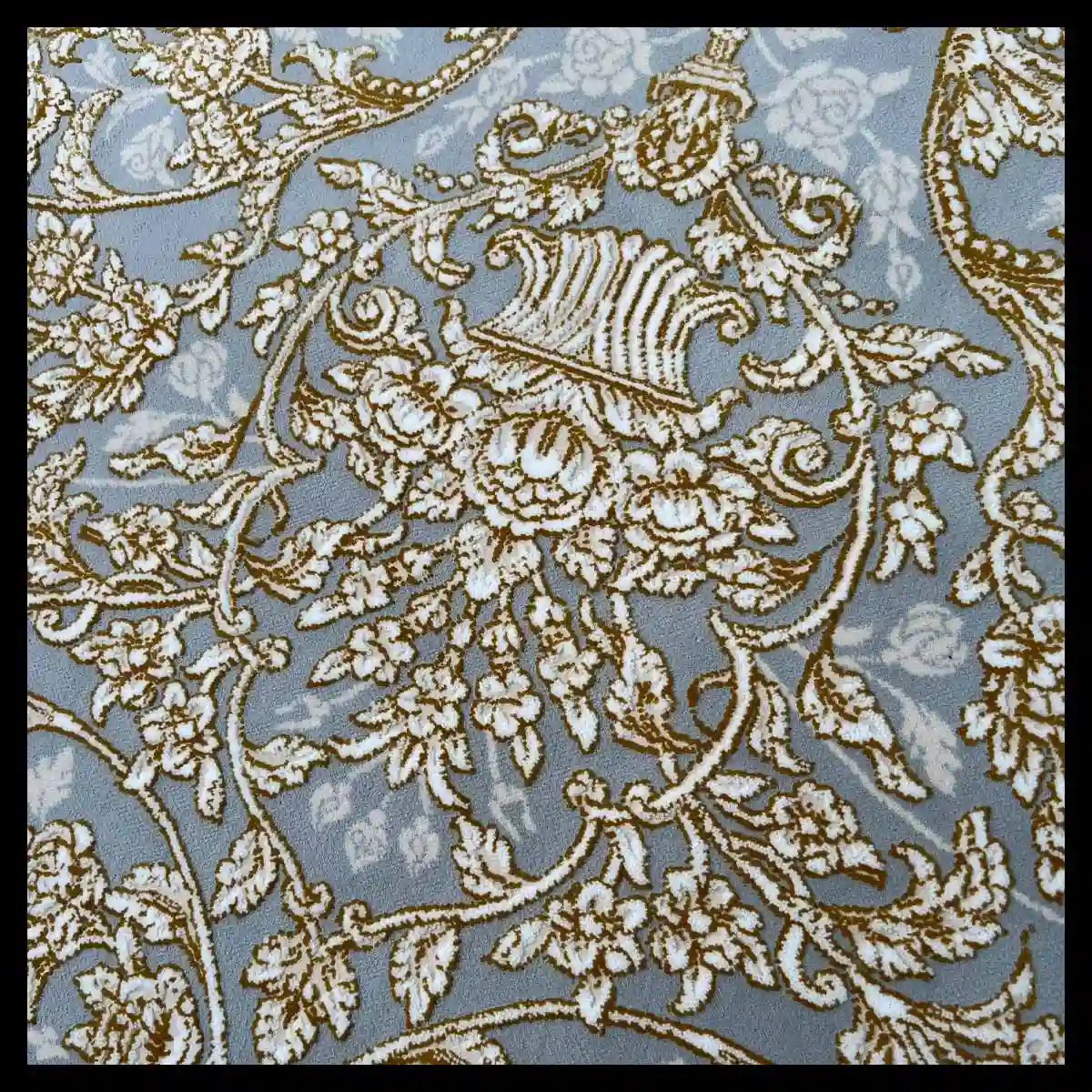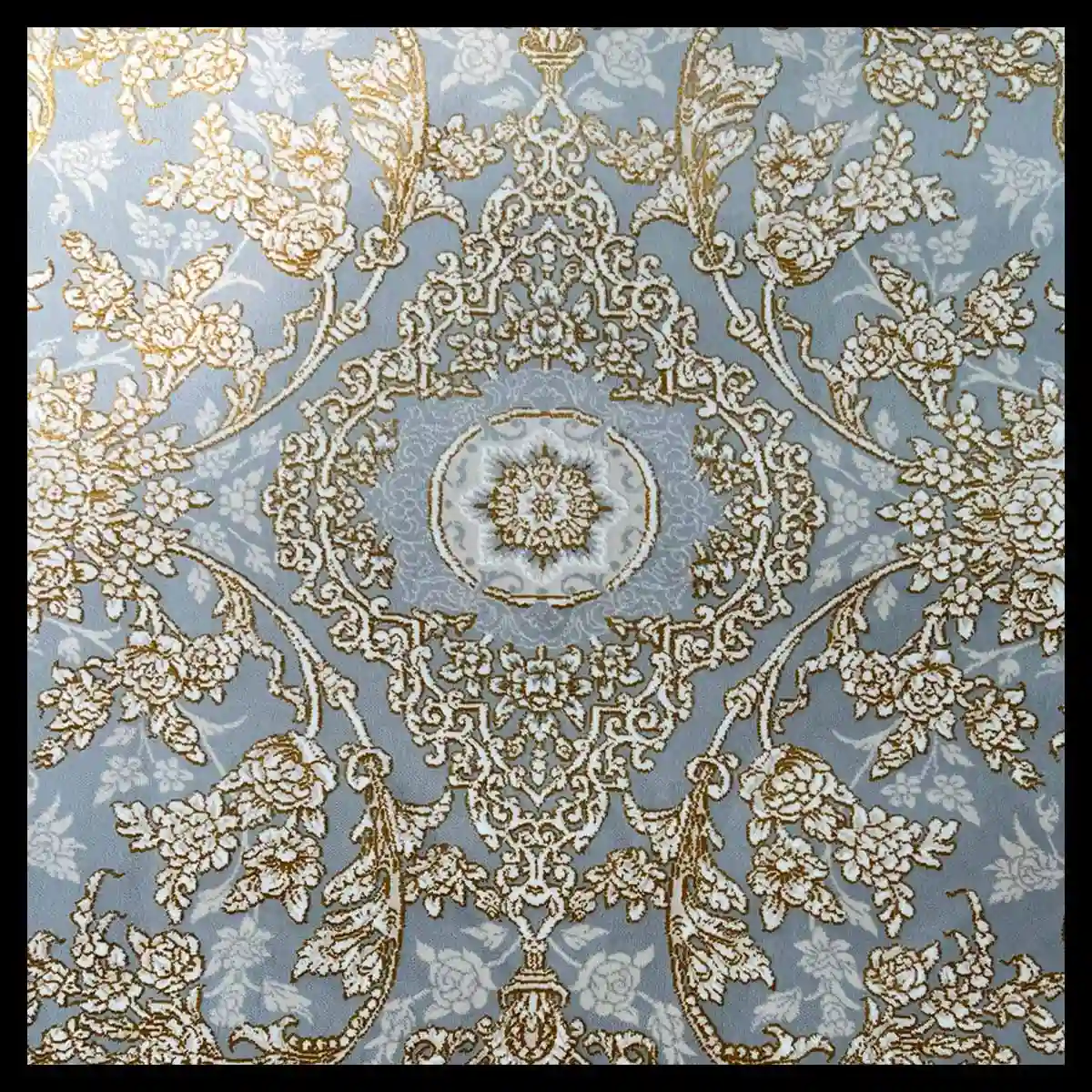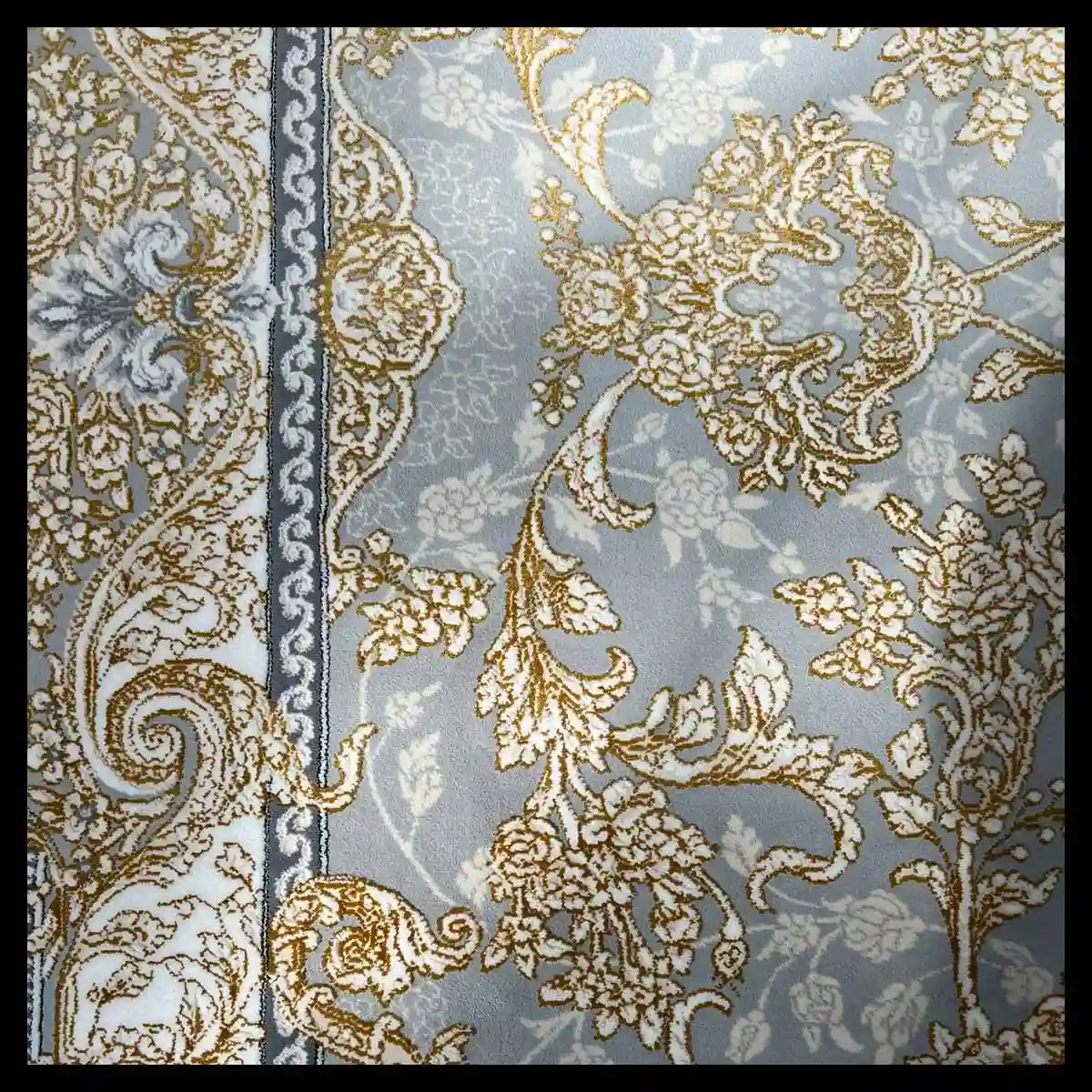 فرش 700 شانه 9 متری سوفیا مدل شروین نقره ای طلایی | تلفیق شکوه کلاسیک و درخشش مدرن