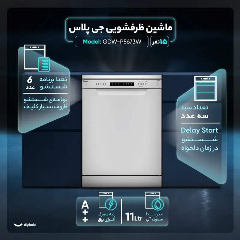 ماشین ظرفشویی جی پلاس مدل GDW-P5673.RM با ظرفیت ۱۵ نفره، مصرف انرژی ++A و امکانات کاربردی، انتخابی هوشمندانه برای خانوادههای پرجمعیت محسوب میشود. طراحی مدرن، چیدمان داخلی منعطف، برنامههای شستشوی متنوع و مصرف آب پایین، ارزش خرید این مدل را افزایش میدهند. اگر به دنبال یک ماشین ظرفشویی کم مصرف، جادار و مجهز به قابلیتهای کاربردی هستید، این مدل جی پلاس میتواند پاسخگوی نیازهای روزمره شما باشد.