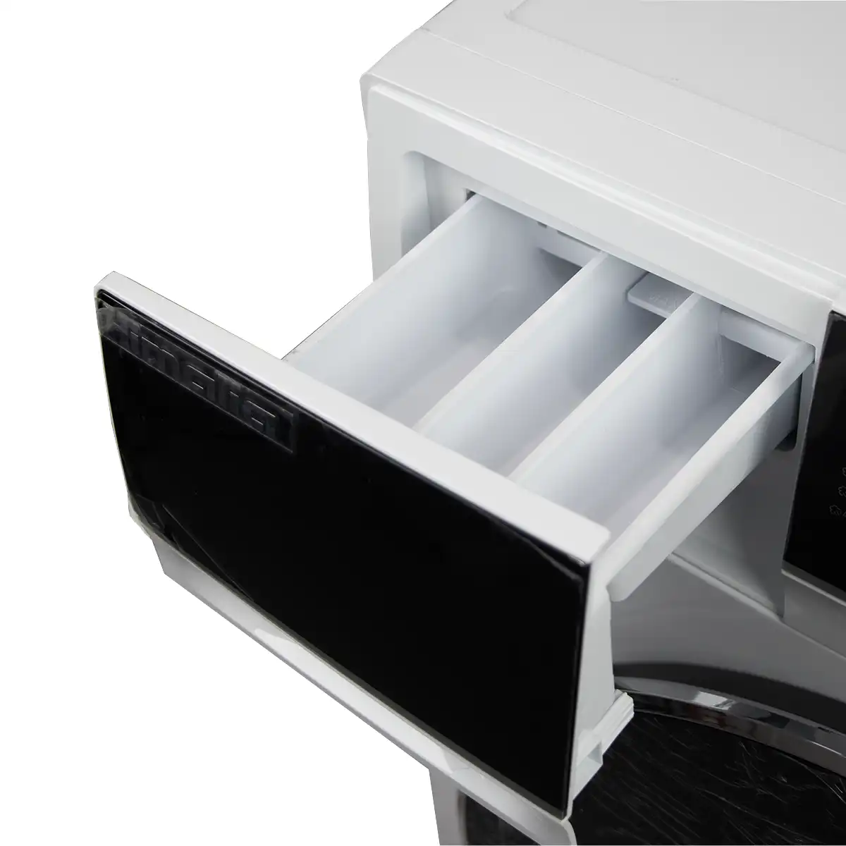 ظرفیت ۱۰ کیلوگرم، هم زمان امکان شست و شوی چند لباس را فراهم میآورد و فضای کمتری نسبت به دو ماشین کوچک اشغال میکند. درب ۱۸۰ درجه از سمت راست، دسترسی ساده برای قرارگیری لباسها دارد.